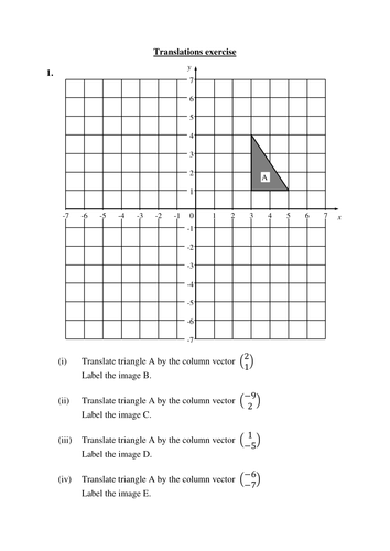Translation - GCSE Maths - Steps, Examples & Worksheet Get your free translation maths worksheet of 20+ questions and answers. Includes reasoning and applied questions. DOWNLOAD FREE Translation maths examples Example 1: translate a 2D shape Translate shape A by the column vector \begin {pmatrix} \; 4 \; \\ \; 1 \; \end {pmatrix} ( 4 1) and label the image B Choose a starting point on the shape.